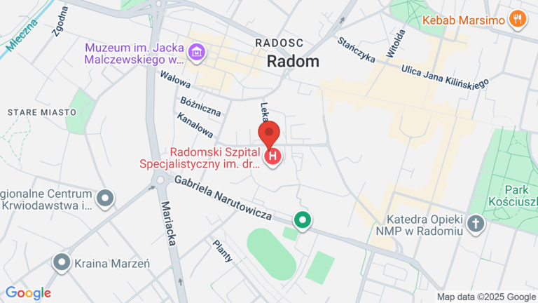 Affidea Radom to placówka zlokalizowana w Radomiu, oferująca badania rezonansu magnetycznego. Obiekt jest przystosowany dla osób z ograniczoną mobilnością, posiada udogodnienia takie jak toaleta, parking i podjazd. Placówka zapewnia również świadczenia dla dzieci, co czyni ją dostępną dla szerokiego grona pacjentów.