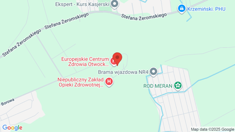 Europejskie Centrum Zdrowia Otwock, Szpital im. Fryderyka Chopina, to placówka znajdująca się w Otwocku. Oferuje szereg usług medycznych, w tym pierwszą wizytę u onkologa, rezonans magnetyczny oraz tomografię komputerową. Placówka jest wyposażona w udogodnienia takie jak winda i podjazd, co ułatwia dostęp pacjentom.