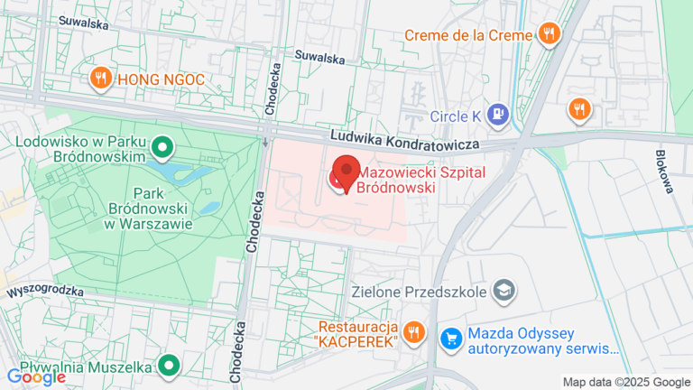 Mazowiecki Szpital Bródnowski, znajdujący się w Warszawie, oferuje szeroki zakres usług medycznych. Placówka przeprowadza badania takie jak pierwsza wizyta u onkologa, rezonans magnetyczny oraz tomografia komputerowa. Szpital zapewnia również dostępność udogodnień, w tym windę oraz podjazd, co ułatwia korzystanie z jego oferty.