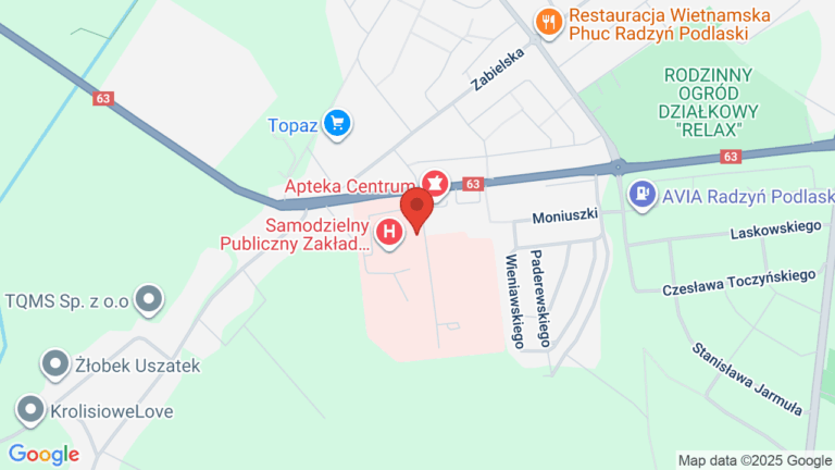 Samodzielny Publiczny Zakład Opieki Zdrowotnej w Radzyniu Podlaskim oferuje badania z zakresu rezonansu magnetycznego oraz tomografii komputerowej. Placówka dysponuje udogodnieniami takimi jak toaleta, parking, podjazd oraz winda, co zapewnia komfort pacjentów. Miejsce to jest dostosowane dla osób z niepełnosprawnościami i umożliwia przeprowadzenie niezbędnych badań diagnostycznych.
