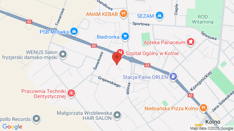 Szpital Ogólny w Kolnie oferuje usługi medyczne, w tym pierwszą wizytę u onkologa oraz tomografię komputerową. Placówka dysponuje udogodnieniami takimi jak toalety, parking, podjazd dla osób niepełnosprawnych oraz winda. Zlokalizowana jest przy ulicy Wojska Polskiego 69 w Kolnie.