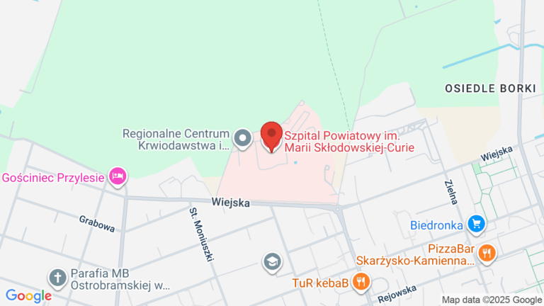 Szpital Powiatowy im. Marii Skłodowskiej-Curie w Skarżysku-Kamiennej oferuje badanie z zakresu tomografii komputerowej. Placówka dysponuje udogodnieniami takimi jak toaleta, parking, podjazd oraz winda, co zwiększa komfort pacjentów. Szpital zapewnia również świadczenia dla dzieci, co czyni go przyjaznym miejscem dla rodzin.