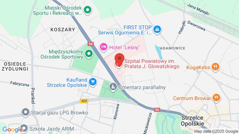 Szpital Powiatowy im. Prałata J. Glowatzkiego w Strzelcach Opolskich oferuje usługi zdrowotne, w tym pierwszą wizytę u onkologa oraz tomografię komputerową. Placówka zapewnia wygodne udogodnienia, takie jak toalety, parking, podjazd oraz windę, co zwiększa komfort pacjentów. Jej lokalizacja na ul. Opolskiej 36 sprawia, że jest łatwo dostępna dla mieszkańców okolicy.
