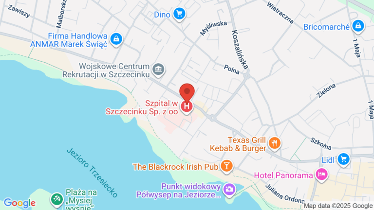 Szpital w Szczecinku Sp. z o.o. to placówka medyczna, która oferuje różnorodne usługi diagnostyczne, w tym pierwszą wizytę u onkologa oraz tomografię komputerową. Dzięki odpowiednim udogodnieniom, takim jak toalety, parking, podjazd oraz winda, szpital zapewnia komfort pacjentom, w tym rodzinom z dziećmi. Położony w Szczecinku, szpital dysponuje dogodną lokalizacją, co ułatwia dostęp do świadczonych usług.
