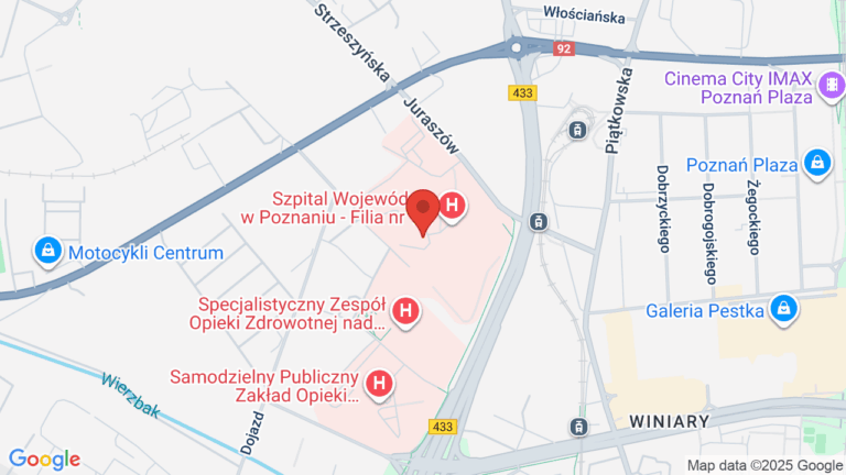 Szpital Wojewódzki w Poznaniu – Filia nr 1, Wielkopolskie Centrum Specjalistyczne, to placówka medyczna oferująca badania z zakresu tomografii komputerowej. Znajduje się przy ulicy Juraszów, zapewniając pacjentom dostęp do udogodnień takich jak winda oraz podjazd. Szpital nie dysponuje parkingiem, a także nie prowadzi świadczeń dla dzieci.