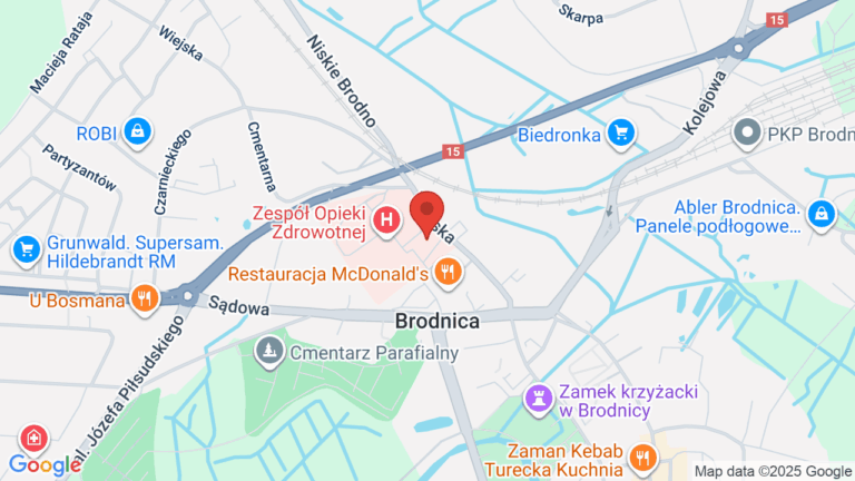 ZESPÓŁ OPIEKI ZDROWOTNEJ W BRODNICY to placówka, która oferuje pierwszą wizytę u onkologa oraz tomografię komputerową. Obiekt jest przystosowany do potrzeb osób z niepełnosprawnościami, zapewniając udogodnienia, takie jak toaleta, parking, podjazd oraz winda. Placówka znajduje się w Brodnicy przy ulicy Wiejskiej 9.