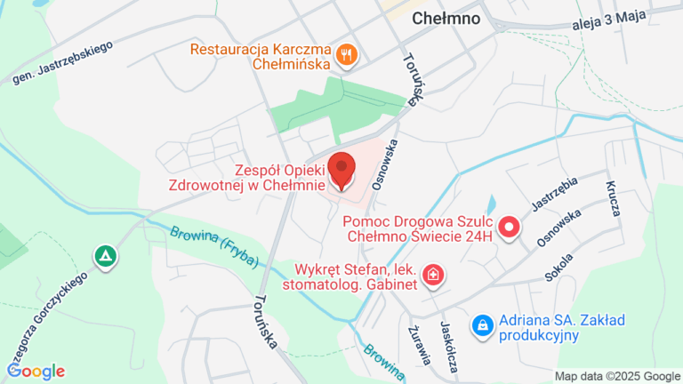 Zespół Opieki Zdrowotnej w Chełmie to placówka, która oferuje badania z zakresu tomografii komputerowej. Znajduje się w Chełmnie na Placu Rydygiera 1. Placówka dysponuje udogodnieniami, takimi jak toaleta, parking, podjazd, winda oraz usługi świadczone dla dzieci.
